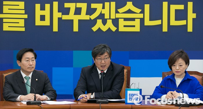 (서울=포커스뉴스) 29일 오전 서울 여의도 국회에서 열린 더불어민주당 보수단체 불법자금지원 의혹규명 진상조사 태스크포스(TF) 1차 회의에 참석한 이춘석(가운데) 위원장이 인사말을 하고 있다.