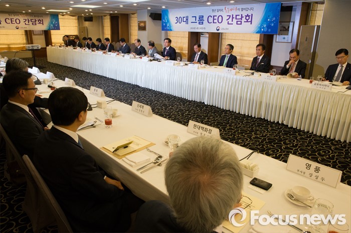 (서울=포커스뉴스) 이기권 고용노동부 장관이 28일 오전 서울 중구 한국프레스센터에서 열린 '30대 그룹 CEO 간담회'에 참석해 모두발언을 하고 있다.