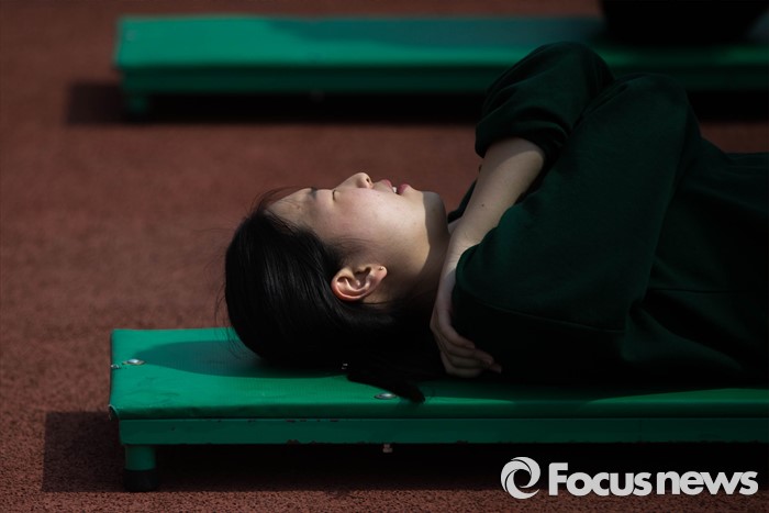 (서울=포커스뉴스) 28일 오후 서울 효창동 효창운동장에서 열린 학군단 57기 후보생 선발전형 체력검정에서 숙명여대 응시생들이 시험을치르고 있다.