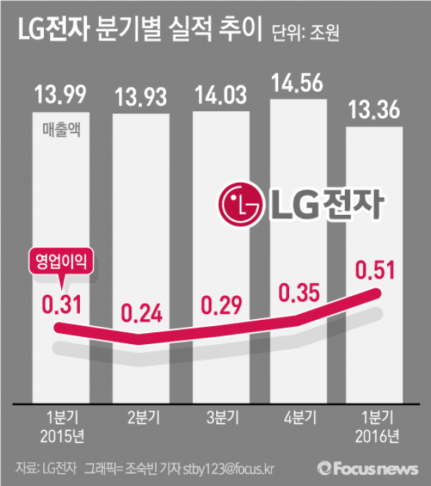 | △ [그래픽] LG전자 분기별 실적 추이 |