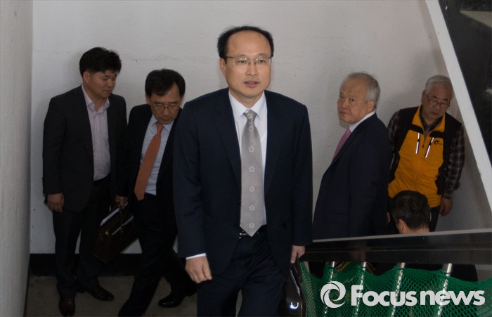 (부여=포커스뉴스) 29일 오후 이완구 전 국무총리가 2013년 재보궐 선거 때 사용한 충남 부여 선거사무소에서 서울고법 형사2부 관계자들이 현장검증을 실시하기 위해 선거사무소로 이동하고 있다.
