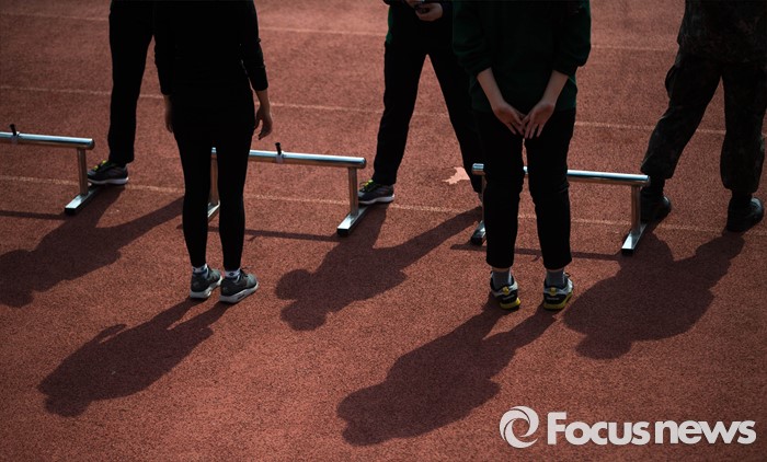 (서울=포커스뉴스) 28일 오후 서울 효창동 효창운동장에서 열린 학군단 57기 후보생 선발전형 체력검정에서 숙명여대 응시생들이 시험을치르고 있다.