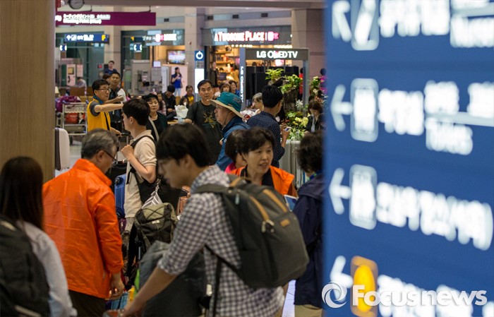 (영종도=포커스뉴스) 중국 노동절 연휴와 일본 골든 위크를 맞아 1일 외국인 관광객들이 인천국제공항을 통해 입국하고 있다.