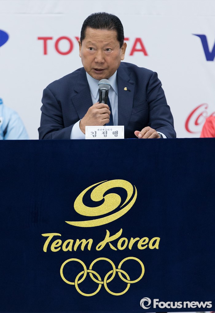 (서울=포커스뉴스) 27일 오후 서울 노원구 태릉선수촌에서 제31회 리우하계올림픽대회 D-100일 미디어데이에 참석한 김정행 대한체육회장이 인사말을 하고 있다.