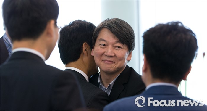(서울=포커스뉴스) 안철수 국민의당 상임공동대표가 25일 오후 서울 영등포구의 한 중식당에서 제20대 국회의원 선거 서울지역 출마자들과 오찬간담회에 앞서 포옹을 하고 있다.