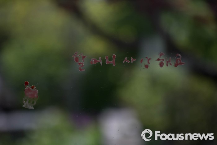 (김해=포커스뉴스) 고 노무현 전 대통령 서거 7주기를 앞두고 1일 오전 노 전 대통령의 사저가 공개되고 있다. 주방 유리에 노 전 대통령의 손녀가 쓴 낙서가 자리하고 있다.