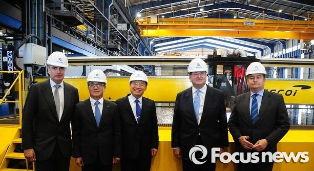 스페인과 한국 조선업체의 협력으로 건조되는 이번 선박은 길이 274m, 폭 48m, 재화중량톤수 15만6000 DWT 규모로, 인도 후에는 스페인 선사인 이바이자발 그룹 내 온디마르 측이 운영할 예정이다.지난 25일(현지시각) 스페인 카디즈 만에 위치한 나반티아 조선소 산하 푸에르토 레알 조선소에서 열린 강재절단식 행사에 참석한 박희권 주 스페인 대사(가운데)와 김만수 디섹 대표이사(왼쪽 두번째)가나반티아 조선소 관계자들과 기념촬영을 하고 있다. <사진제공=대우조선해양>