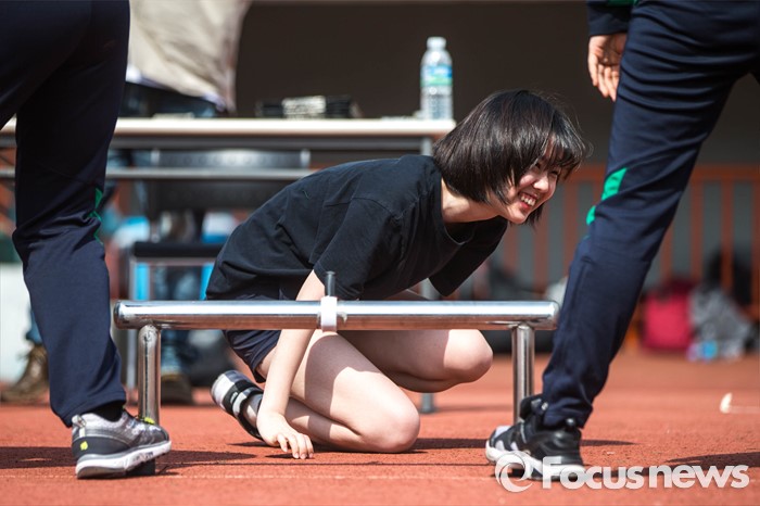(서울=포커스뉴스) 28일 오후 서울 효창동 효창운동장에서 열린 학군단 57기 후보생 선발전형 체력검정에서 숙명여대 응시생들이 시험을치르고 있다.