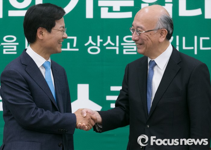 | △ 악수하는 천정배-벳쇼 코로 |