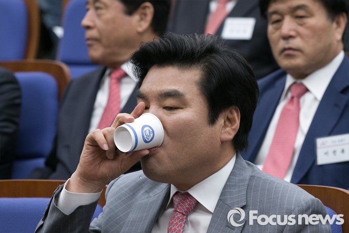 (서울=포커스뉴스) 원유철 새누리당 원내대표가 26일 오전 서울 여의도 국회에서 열린 당선자 워크숍에 참석해, 물을 마시고 있다.