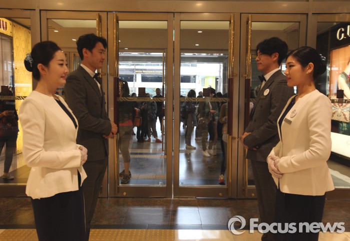 이외에도 총 300만곡의 음악 데이터베이스를 통해 층별, 시간대별, 날씨 등에 따른 다양한 음악을 각 점포별로 선보이고 있다.소공동 롯데백화점 본점 개점에 앞서 직원들이 손님맞이 준비를 하고 있다.<사진제공=롯데백화점>