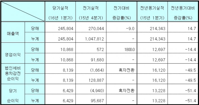 영업이익은 전년 같은 기간 대비 14.4% 감소한 109억원, 당기순이익 규모는 64억원을 기록했다.