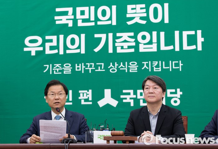 (서울=포커스뉴스) 천정배(왼쪽) 국민의당 공동대표가 25일 오전 서울 여의도 국회에서 최고위원회의에 참석해 모두발언을 하고 있다. 오른쪽운 안철수 상임공동대표.