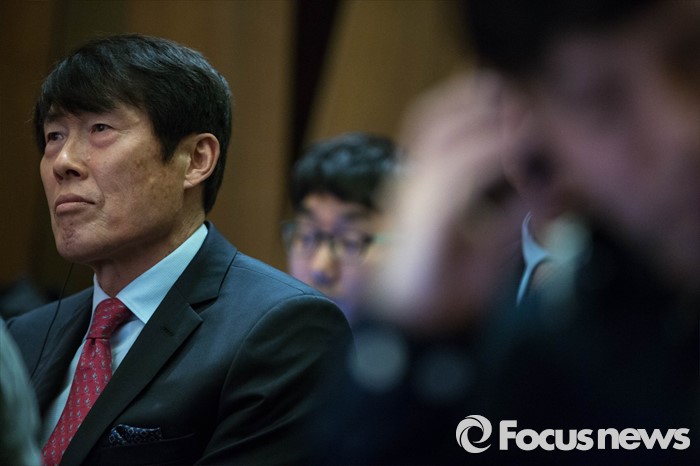 (서울=포커스뉴스) 차범근 전 축구감독이 27일 오후 서울 강남구 아이파크타워에서 열린 KFA-FIFA 기자회견에 참석, 지오니 인판티노 FIFA 회장의 발언을 경청하고 있다.