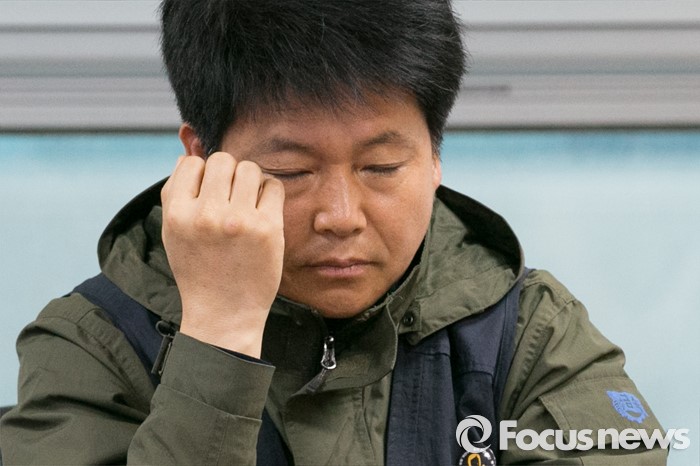 (서울=포커스뉴스) 김상구 민주노총 금속노조 위원장이 27일 오후 서울 여의도 국회 의원회관에서 심상정 정의당 대표와 조선업종 구조조정 긴급현안 간담회에 참석해, 생각에 잠겨 있다.
