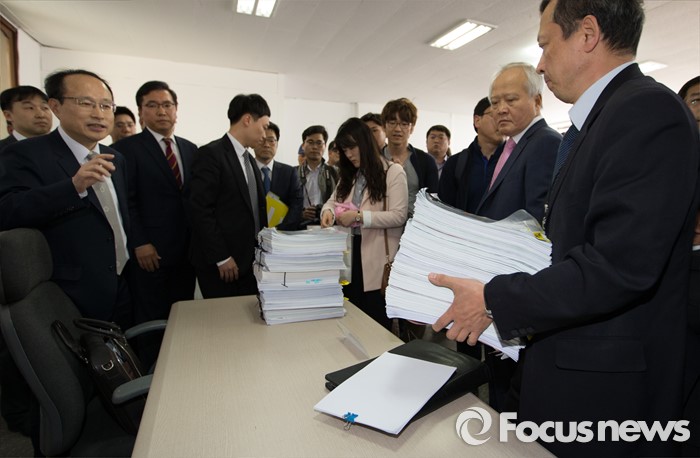 (부여=포커스뉴스) 29일 오후 이완구 전 국무총리가 2013년 재보궐 선거 때 사용한 충남 부여 선거사무소에서 서울고법 형사2부 관계자들이 현장검증을 실시하고 있다.