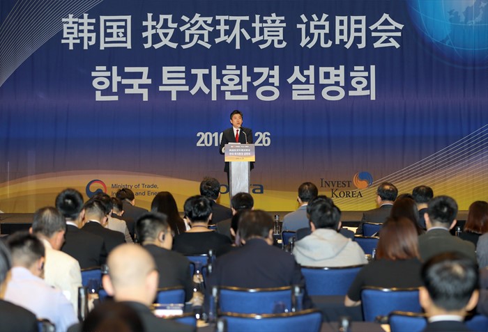 (서울=포커스뉴스) 정승일 산업통상자원부 무역투자실장이 26일 오전 서울 광화문 포시즌호텔 그랜드볼룸에서 제2차 차이나 위크(China Week) 행사 일환으로 열린 한국투자설명회에 참석해 축사를 하고 있다. <사진제공=산업통상자원부>