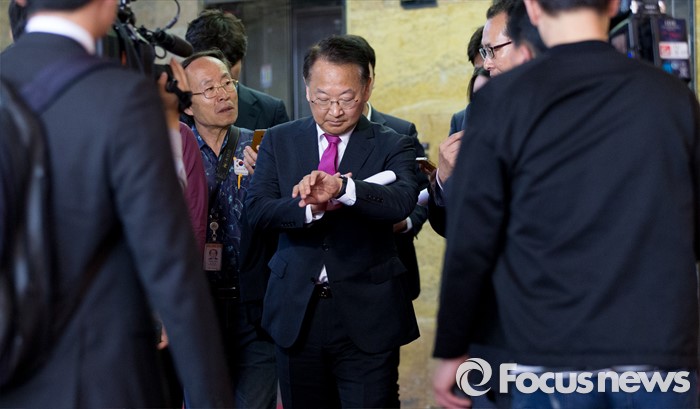 | △ 시계 보는 유일호 경제부총리 |