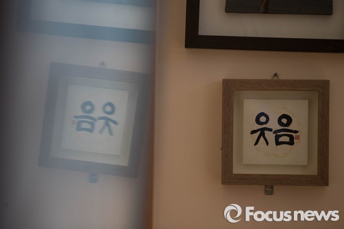 (김해=포커스뉴스) 고 노무현 전 대통령 서거 7주기를 앞두고 1일 오전 노 전 대통령의 사저가 공개되고 있다. 사진은 사랑채 벽면에 걸린 액자.