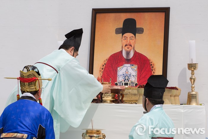 (서울=포커스뉴스) 28일 오전 서울 중구 남산골한옥마을에서 중구청 관계자들이 '충무공 탄생 471주년 기념 다례식'을 개최하고 있다.
