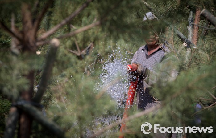 (다라더치/중국=포커스뉴스) 25일 오전 중국 내몽고 다라더치 쿠부치사막에서 2016 미래숲 15기 녹색봉사단 현지 관계자가 단원들이 심어놓은 소나무에 물을 주고 있다. 미래숲 녹색봉사단은 이번 봉사활동을 통해 황폐화된 사막에 나무 심기 및 각국 청년들과 우호를 증진을 위한 교류 활동을 전개했다.
