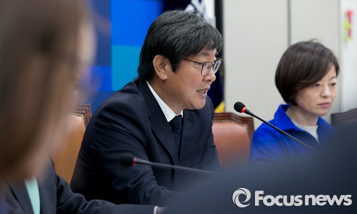 (서울=포커스뉴스) 29일 오전 서울 여의도 국회에서 열린 더불어민주당 보수단체 불법자금지원 의혹규명 진상조사 태스크포스(TF) 1차 회의에 참석한 이춘석 위원장이 인사말을 하고 있다.