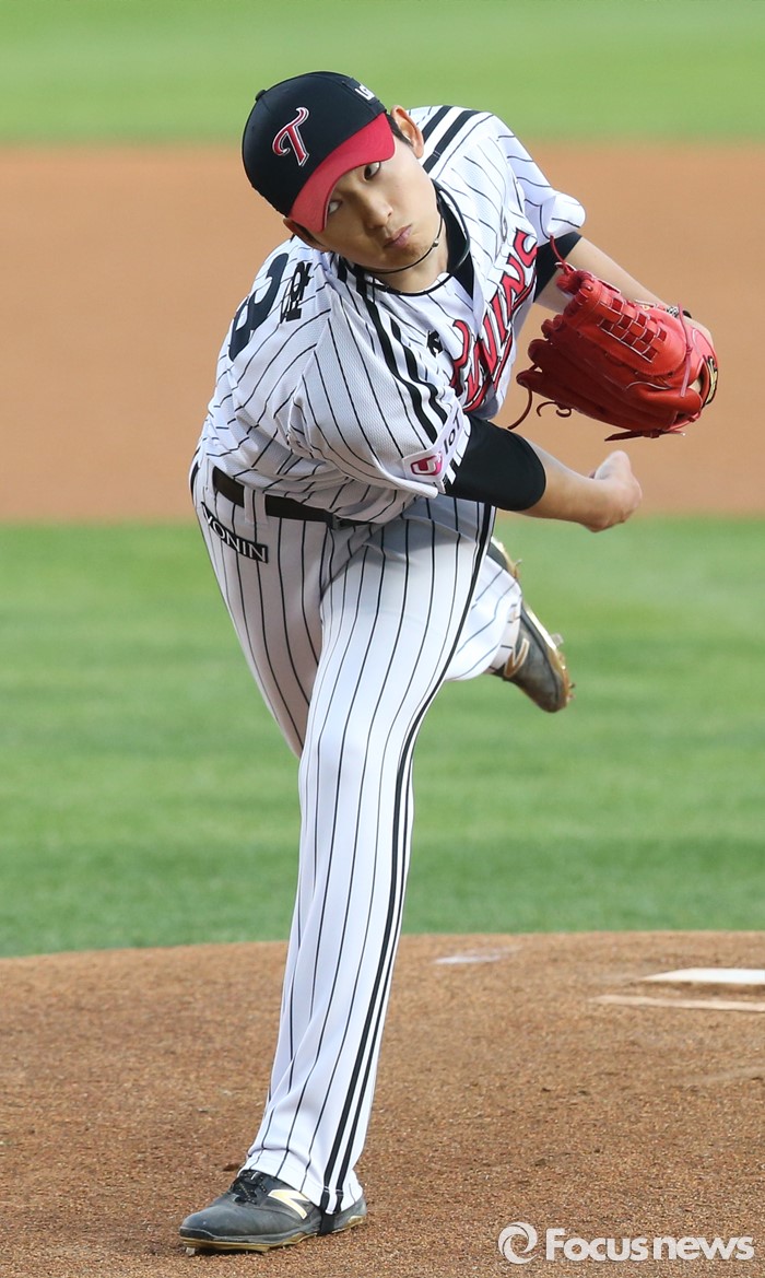 (서울=포커스뉴스) 29일 서울 잠실구장에서 열린 2016 프로야구 kt-LG 경기에서 1회초 LG 선발투수 이준형이 투구하고 있다.