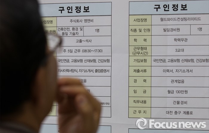 (대전=포커스뉴스) 28일 오후 대전 서구 노인복지관 3층 대강당에서 열린 찾아가는 시니어 취업 박람회를 찾은 구직희망자가 구인광고를 살피고 있다.