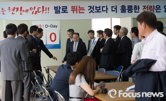 (부여=포커스뉴스) 29일 오후 이완구 전 국무총리가 2013년 재보궐 선거 때 사용한 충남 부여 선거사무소에서 사법부 관계자들이 현장검증을 실시하고 있다.