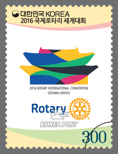 김기덕 우정사업본부장은 "이번 우표발행으로 사회봉사와 기부문화에 대한 전세계인의 관심과 인식을 고취하는 계기가 되기를 기대한다"고 말했다.2016 국제로타리 세계대회 기념우표 <사진제공=우정사업본부>