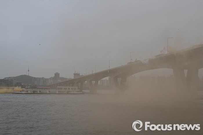 (서울=포커스뉴스) 27일 오전 서울 영등포구 여의도 한강공원 원효대교 일대에서 '수도 서울 민․관․군 합동 대규모 복합재난 가상훈련'이 진행되고 있다.