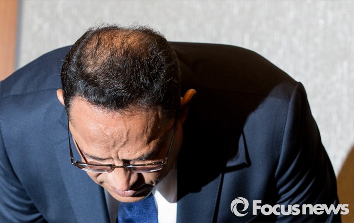 (서울=포커스뉴스) 2일 오전 서울 영등포구 콘래드호텔에서 열린 '옥시레킷벤키저(현 RB코리아) 가습기 살균제 파동' 관련 기자회견에서 아타 울라시드 사프달 옥시코리아 대표가 고개 숙여 사과하고 있다.