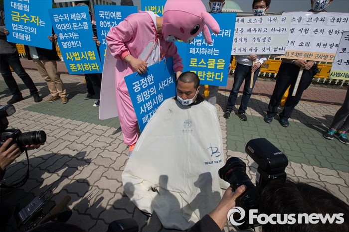△ 국회앞, 사법시험 준비 고시생 삭발식