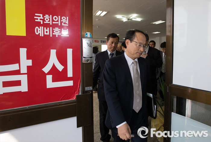 (부여=포커스뉴스) 29일 오후 이완구 전 국무총리가 2013년 재보궐 선거 때 사용한 충남 부여 선거사무소에서 사법부 관계자들이 현장검증을 마치고 선거사무소를 나서고 있다.