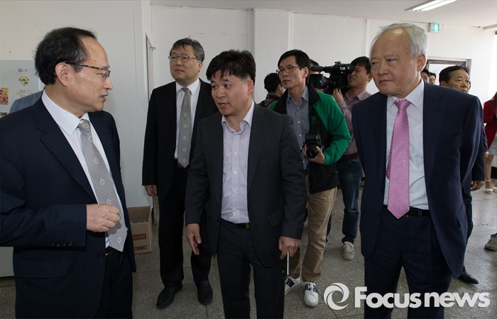 (부여=포커스뉴스) 29일 오후 이완구 전 국무총리가 2013년 재보궐 선거 때 사용한 충남 부여 선거사무소에서 서울고법 형사2부 관계자들이 현장검증을 실시하고 있다.