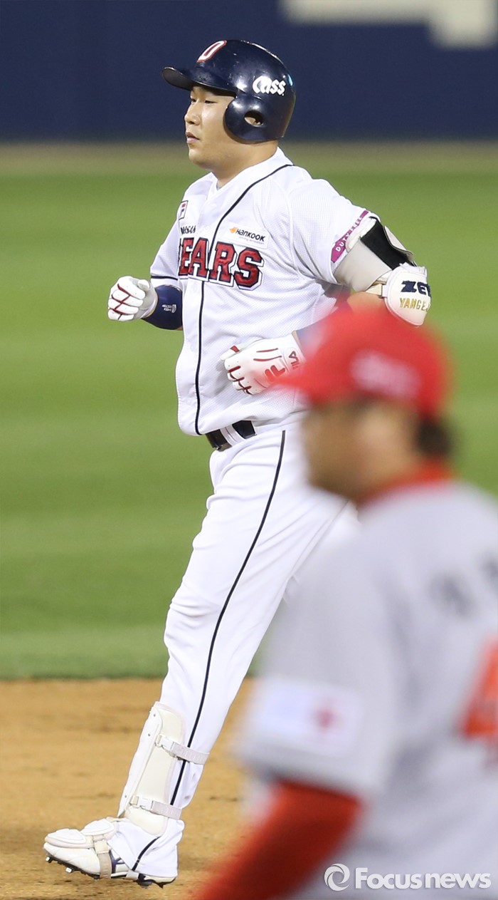 (서울=포커스뉴스) 26일 서울 잠실구장에서 열린 2016 프로야구 SK-두산 경기 8회말 1사후 두산 양의지가 좌중월 1점 홈런을 치고 베이스를 돌고 있다.