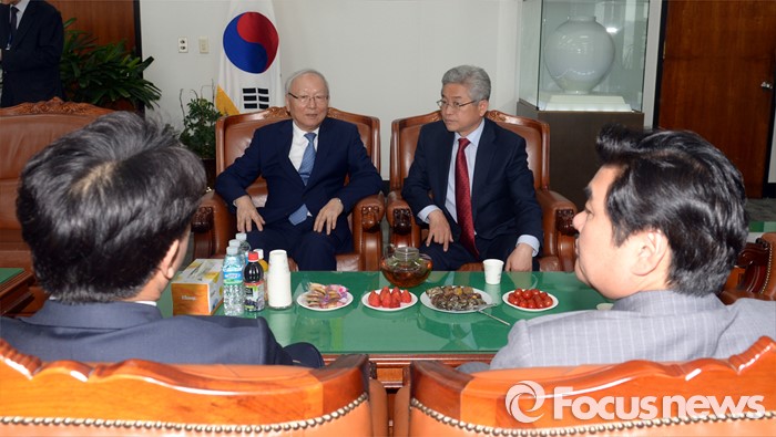 (서울=포커스뉴스) 이병호(뒷줄 왼쪽) 국정원장이 27일 오후 서울 여의도 국회에서 열린 정보위원회 간담회에 참석해, 정보위원들과 대화하고 있다. 이날 국회 정보위 간담회에서는 북한의 제5차 핵실험 가능성과 잠수함 탄도미사일 실험 등 대북 현안에 대해 논의한다.