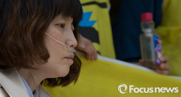 (서울=포커스뉴스) 2일 오후 서울 서초구 서울중앙지방검찰청 앞에서 가습기살균제 피해자 윤정애 씨가 옥시레킷벤키저 대표 등 8명의 이사진 형사고발 기자회견 중 생각에 잠겨 있다.
