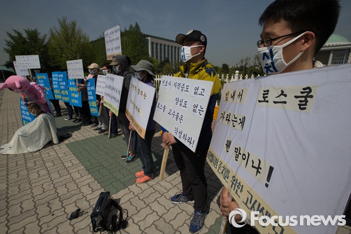 (서울=포커스뉴스) 26일 오전 서울 영등포구 국회의사당 앞에서 사법시험 준비 고시생들이 사법시범 존치를 촉구하고 있다.