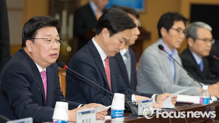 (대전=포커스뉴스) 김종인 더불어민주당 비대위 대표와 이종걸 원내대표를 비롯한 더민주 의원 및 당직자들이 28일 오후 대전시청을 방문한 가운데 대회의실에서 열린 더불어민주당-대전시 정책간담회에서 권선택 대전시장이 환영사를 하고 있다.