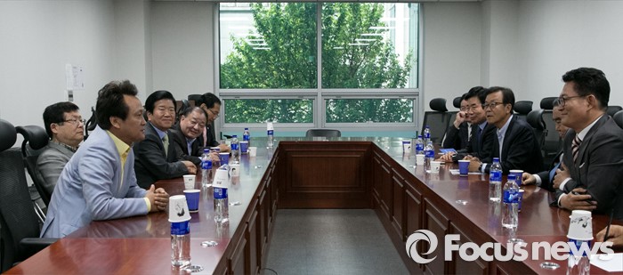 (서울=포커스뉴스) 29일 오전 서울 여의도 국회 의원회관에서 전당대회 연기론 등 논의를 위해 진행된 더불어민주당 4선 이상 중진모임에 참석한 의원들이 대화하고 있다. 이날 모임에는 강창일, 변재일, 이상민, 안민석, 설훈, 박병석, 오제세, 이상민, 문희상 의원과 김진표, 송영길 당선인 등이 참석했다.