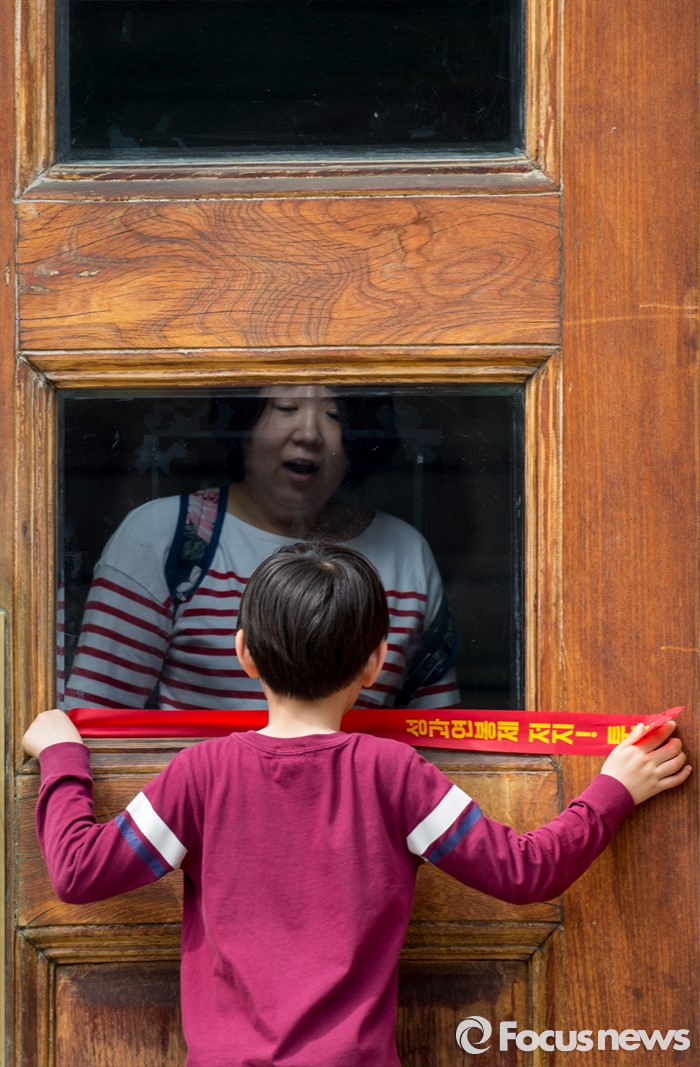 (서울=포커스뉴스) 근로자의날을 맞은 1일 오후 서울광장에서 열린 한국노총 5.1 전국노동자대회에 참가한 어린이기 머리띠를 가지고 놀고 있다.