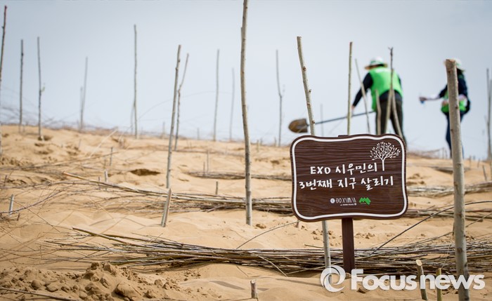 (다라더치/중국=포커스뉴스) 25일 오후 중국 내몽고 다라더치 쿠부치사막에 엑소 시우민의 팬들이 기증한 나무들이 심겨 있다. 시우민 팬클럽은 2014년부터 매 해마다 미래숲에 나무를 기증하고 있다.