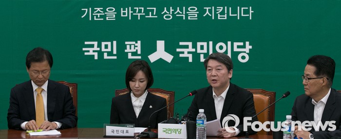 (서울=포커스뉴스) 2일 오전 서울 여의도 국회에서 열린 국민의당 최고위원회의에 참석한 안철수 상임공동대표가 의료사고 피해구제 및 의료분쟁 조정 등에 관한 법률 일부개정법률안(일명 신해철법)과 관련해 발언하고 있다. 왼쪽부터 천정배 공동대표, 故 가수 신해철의 아내 윤원희 씨, 안 대표, 박지원 원내대표.