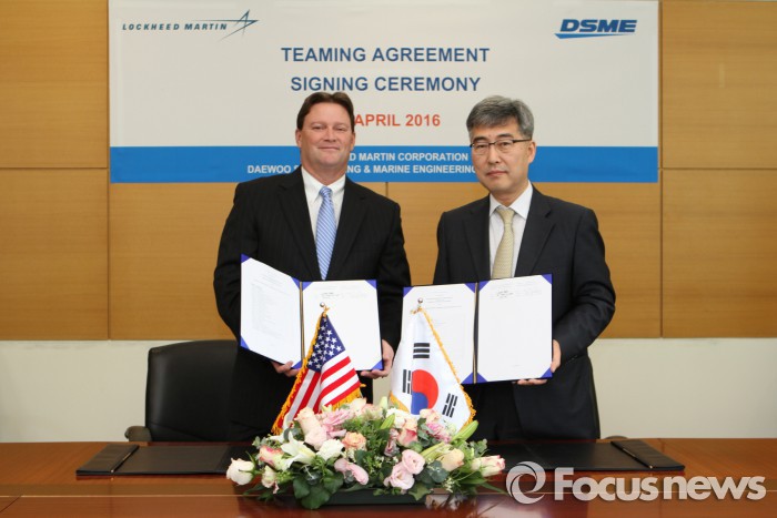 (서울=포커스뉴스) 대우조선해양은 세계 최대규모 방산업체인 미국의 록히드마틴(Lockheed Martin)과 다목적 전투함 시장 동반 진출에 관한 파트너십(Teaming Agreement)을 체결했다고 28일 밝혔다.