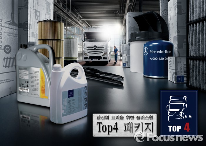 탑4 패키지는 전국 17개 메르세데스-벤츠 상용차 공식 서비스센터에서 순정 엔진 오일 교환 서비스를 구매하는 악트로스·아테고 차량 고객들에게 순정 엔진 오일 교환에 필요한 상품 3개와 플러스원으로 구성된 패키지를 특별 가격에 제공하는 프로모션이다.