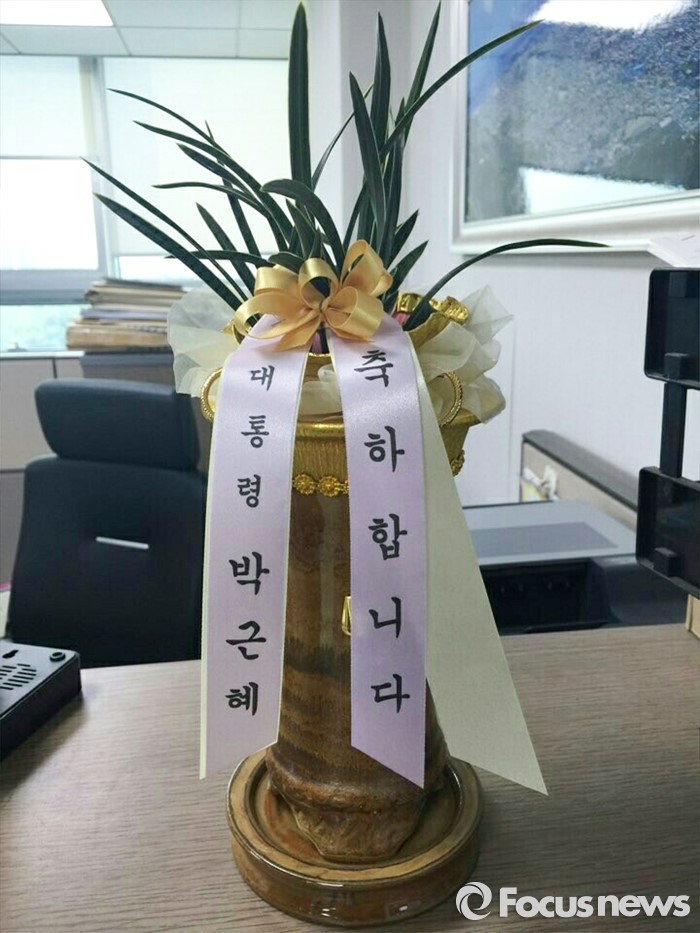 (서울=포커스뉴스) 박근혜 대통령이 박지원 국민의당 신임 원내대표에게 보낸 축하 난. <사진제공= 국민의당>
