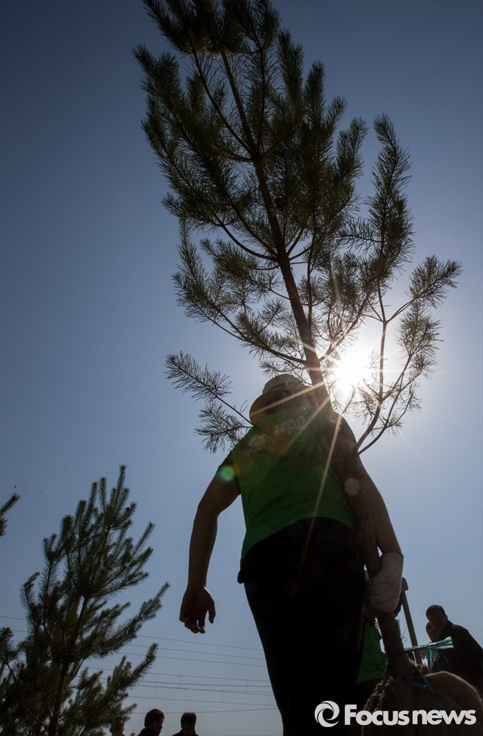(다라더치/중국=포커스뉴스) 25일 오전 중국 내몽고 다라더치 쿠부치사막에서 2016 미래숲 15기 녹색봉사단원들이 나무 심기 작업을 하고 있다. 미래숲 녹색봉사단은 이번 봉사활동을 통해 황폐화된 사막에 나무 심기 및 각국 청년들과 우호를 증진을 위한 교류 활동을 전개했다.