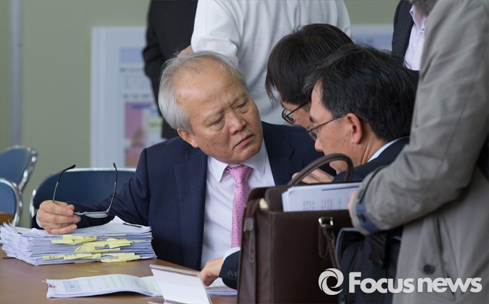 (부여=포커스뉴스) 29일 오후 이완구 전 국무총리가 2013년 재보궐 선거 때 사용한 충남 부여 선거사무소에서 이 전 총리 변호사 측이 논의하고 있다.