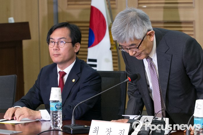 (서울=포커스뉴스) 최장집 고려대 명예교수가 25일 오후 서울 여의도 국회 의원회관에서 새누리당 혁신모임 외부인사 간담회에 초청되어 강연 전 인사하고 있다.